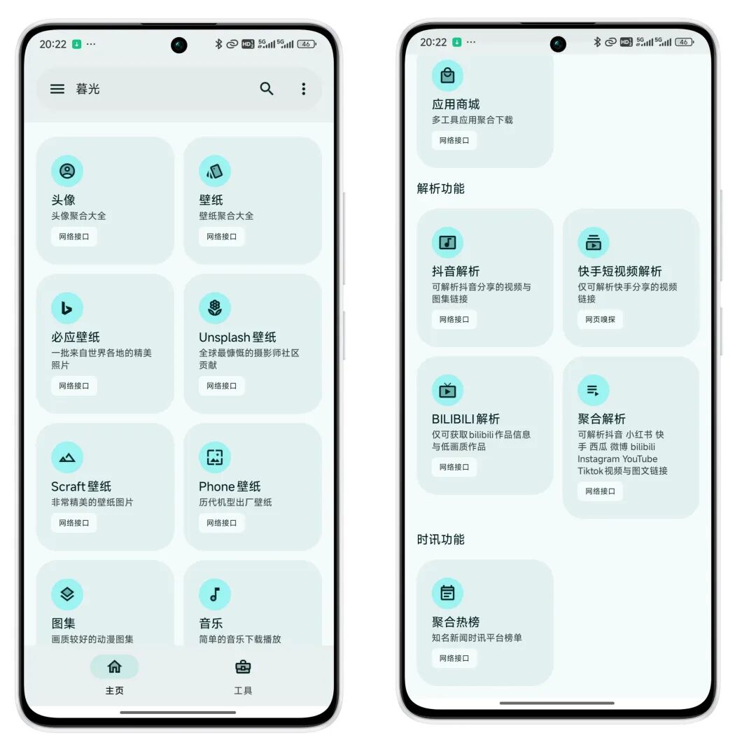 这款软件目前内置了多种常用的日常工具,包括壁纸下载、短视频解析、资讯阅读、青年文摘、查询工具、文本编辑、颜色工具等等
